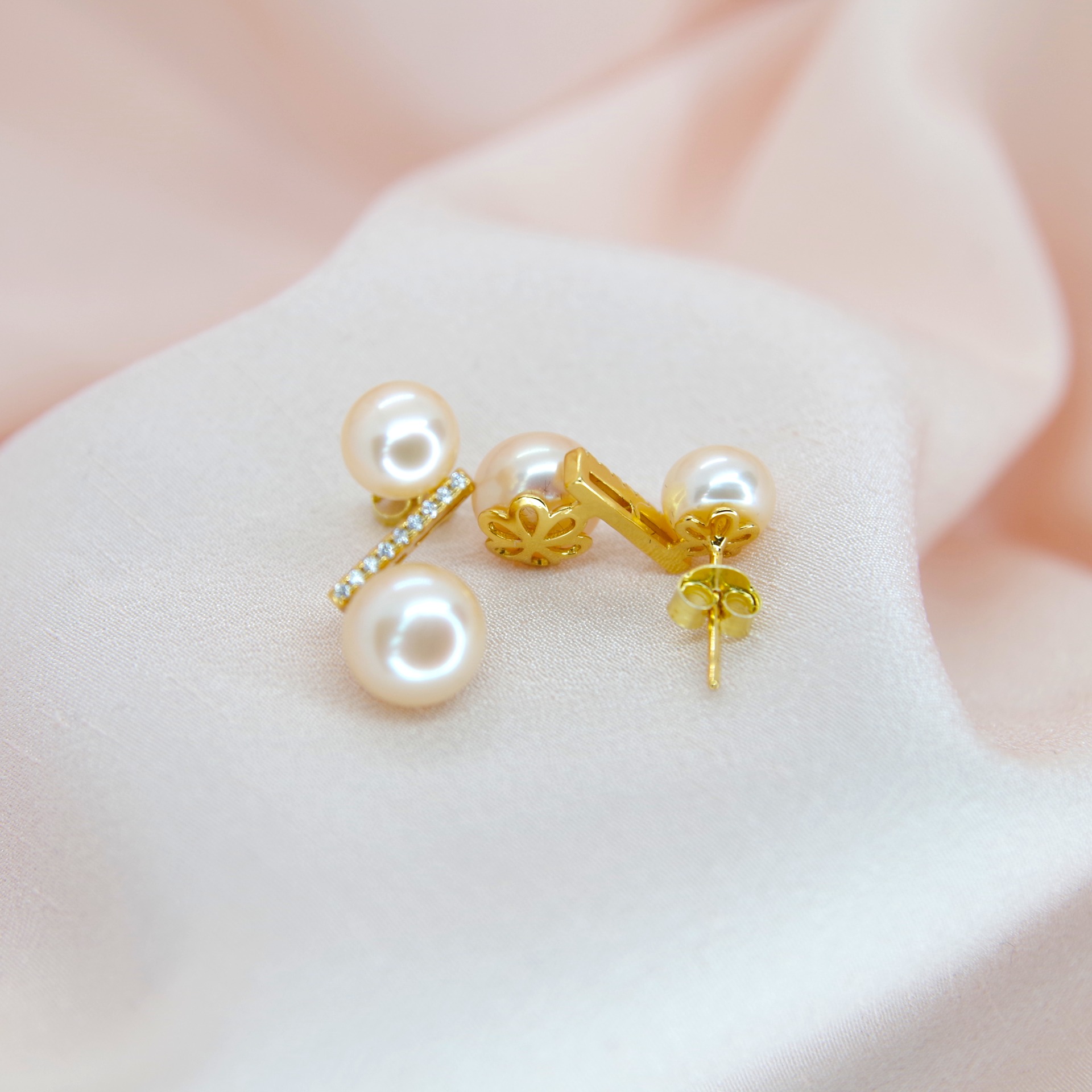 Krásné stříbrné náušnice s perlami, pozlacené 14k zlatem.