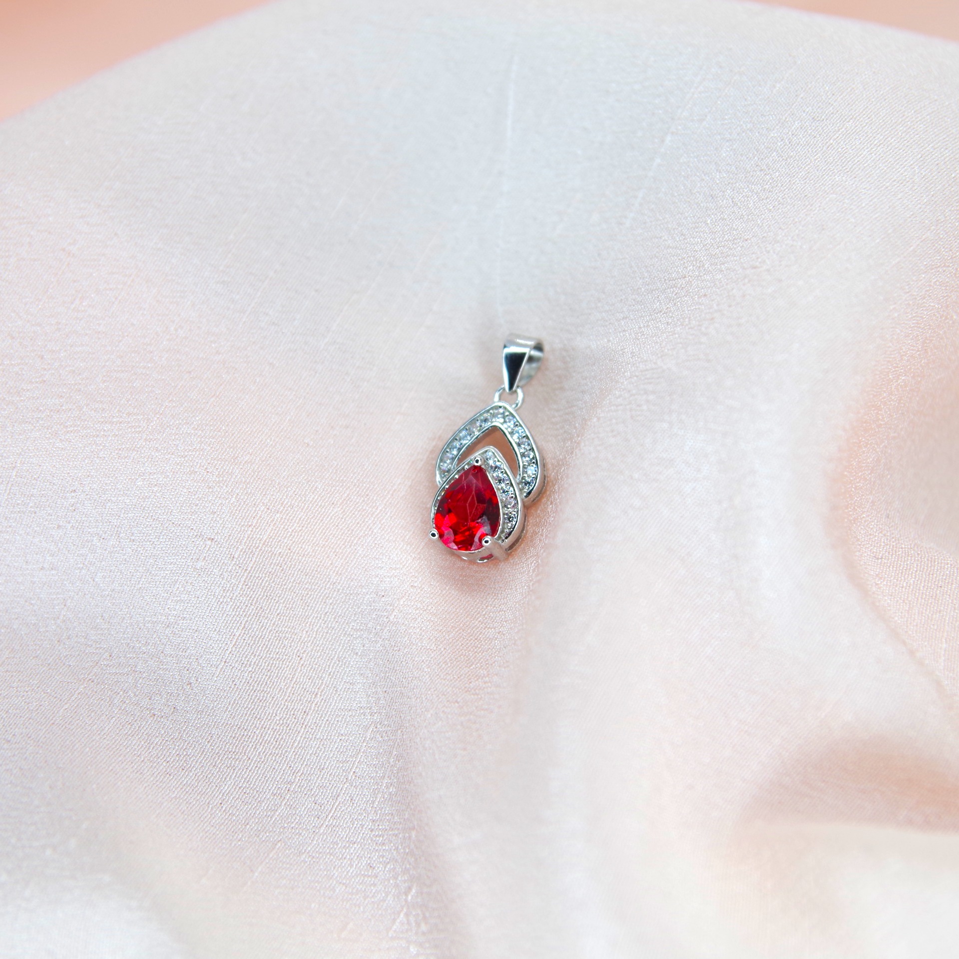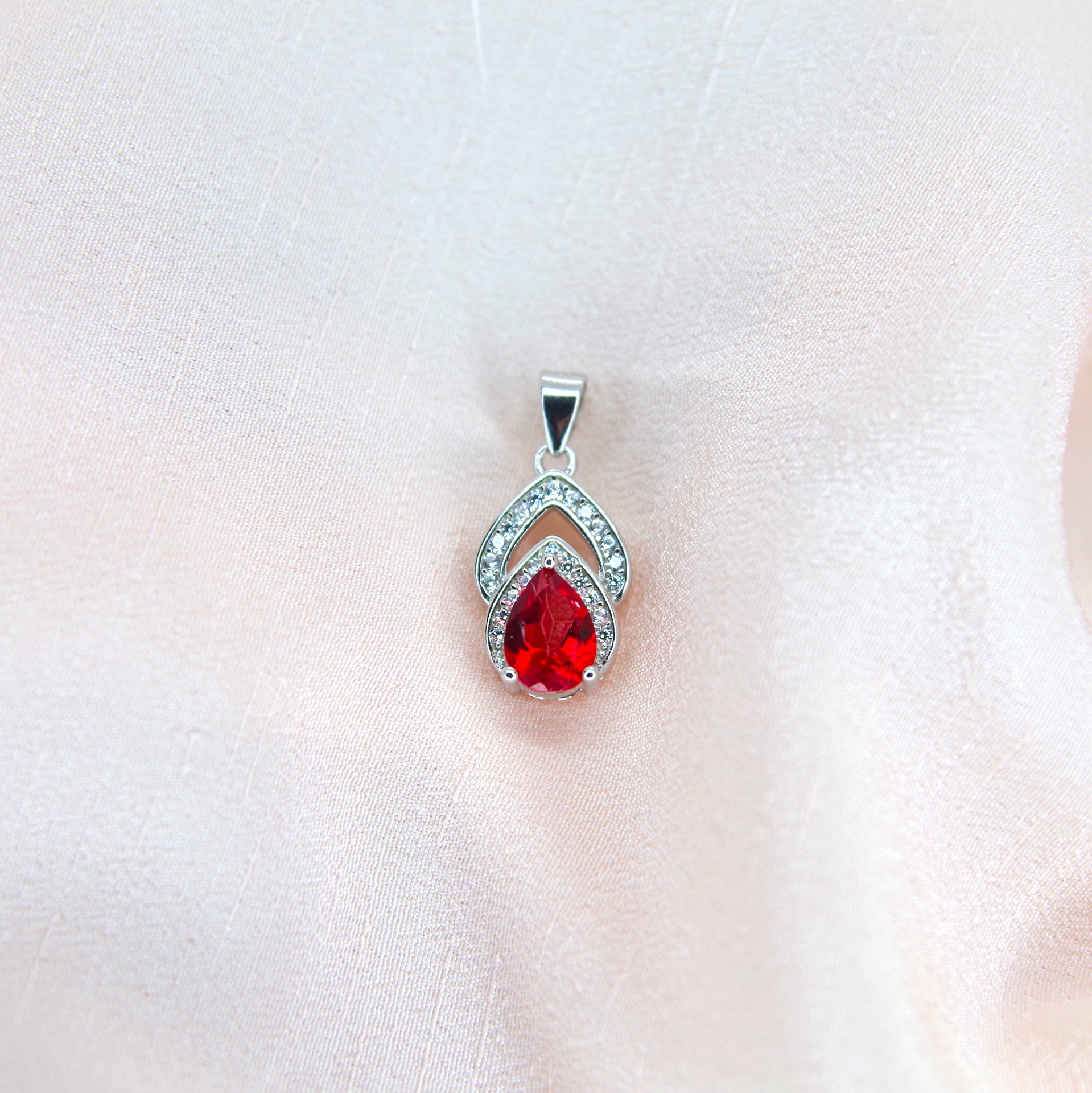 Elegantní stříbrný přívěsek s přírodním červeným topazem a zirkony. Pozlacený 14k bílým zlatem.