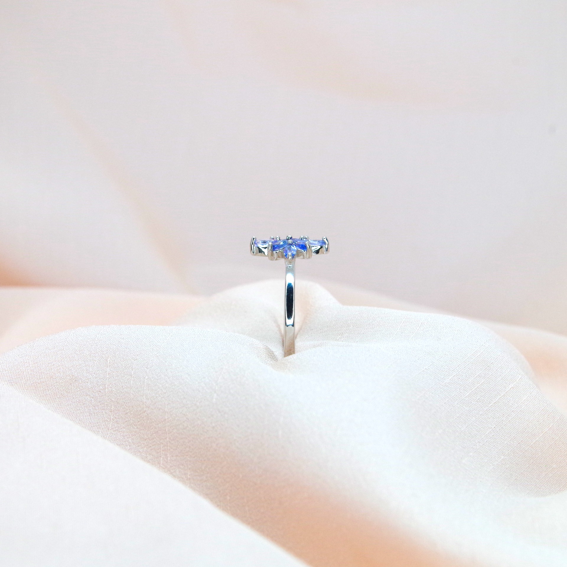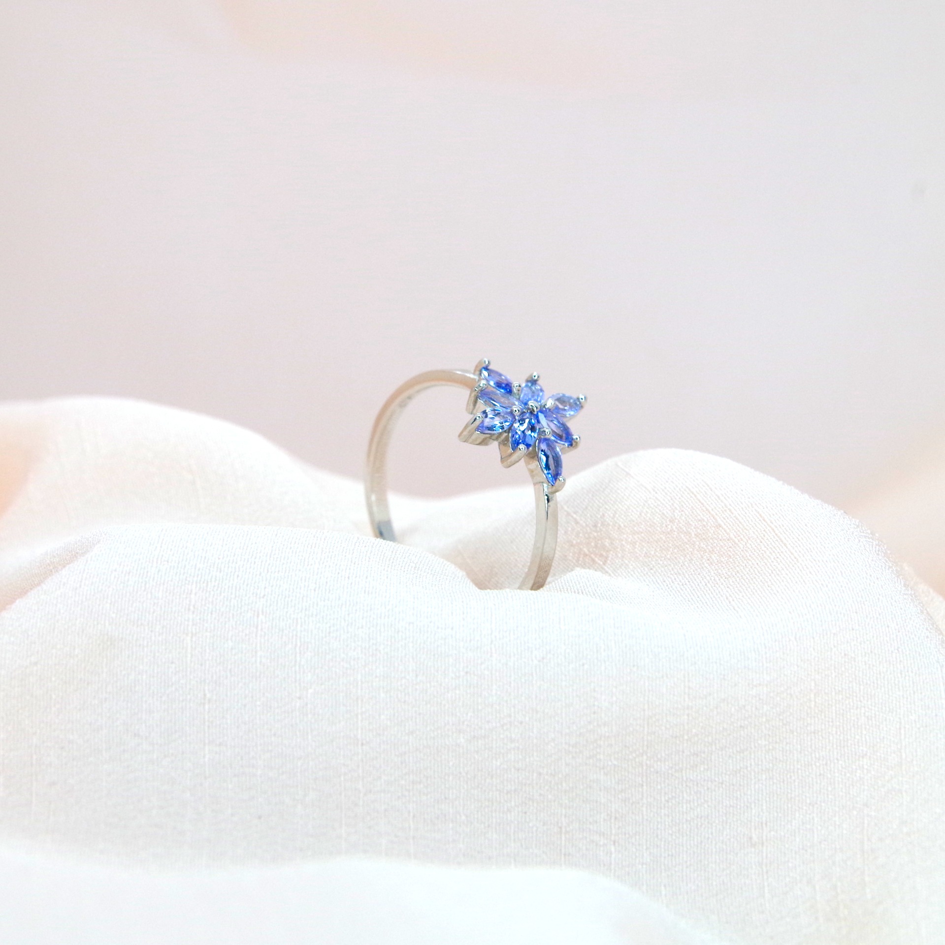 Elegantní stříbrný prsten s přírodními tanzanity, pozlacený 14k bílým zlatem.