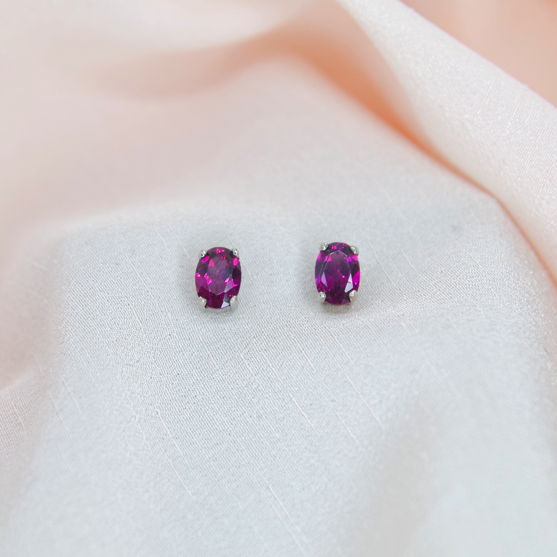 Krásné stříbrné náušnice s pravými rodolit granáty, pozlacené 14k bílým zlatem.