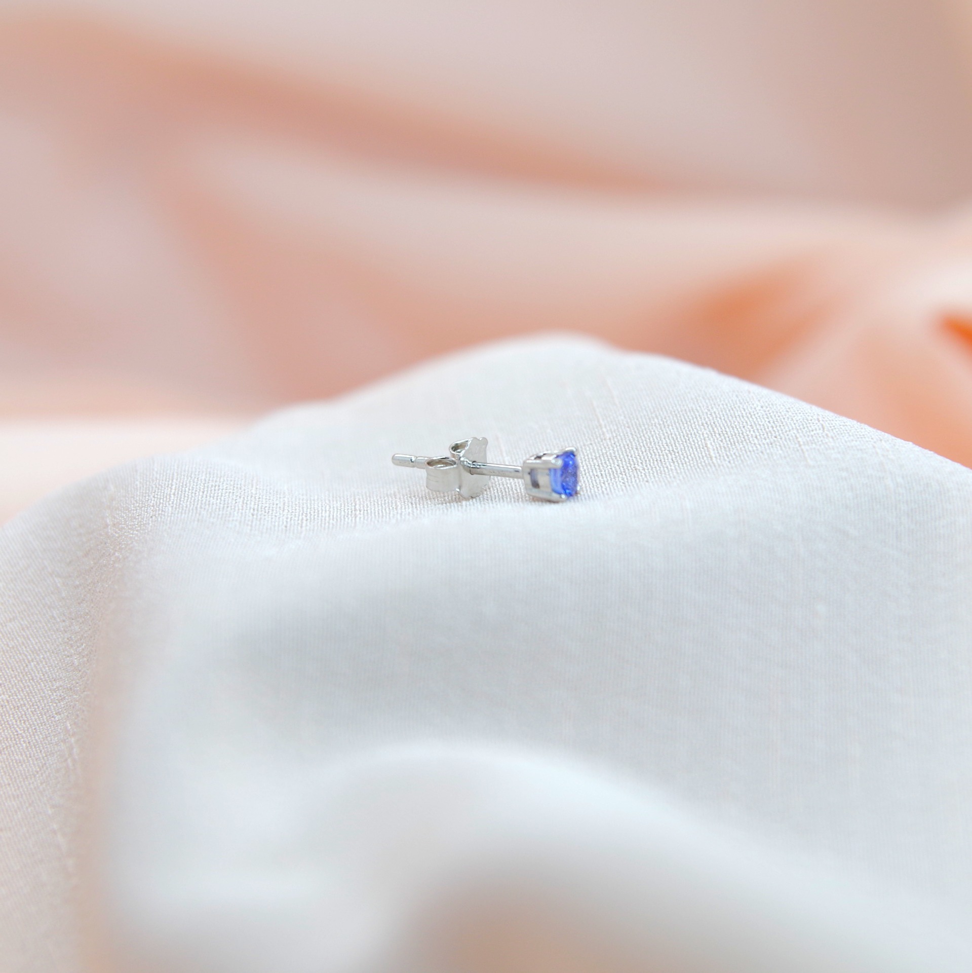 Jemné stříbrné náušnice s pravými tanzanity, pozlacené 14k bílým zlatem.