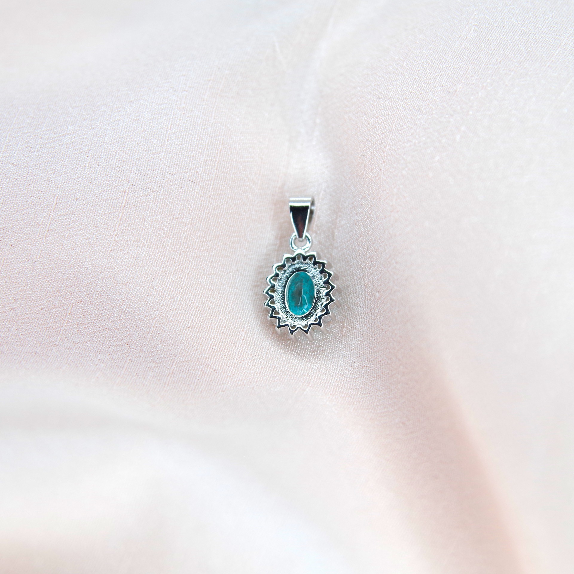 Jemný stříbrný přívěsek s přírodním modrým topazem a zirkony. Pozlacený 14k bílým zlatem.