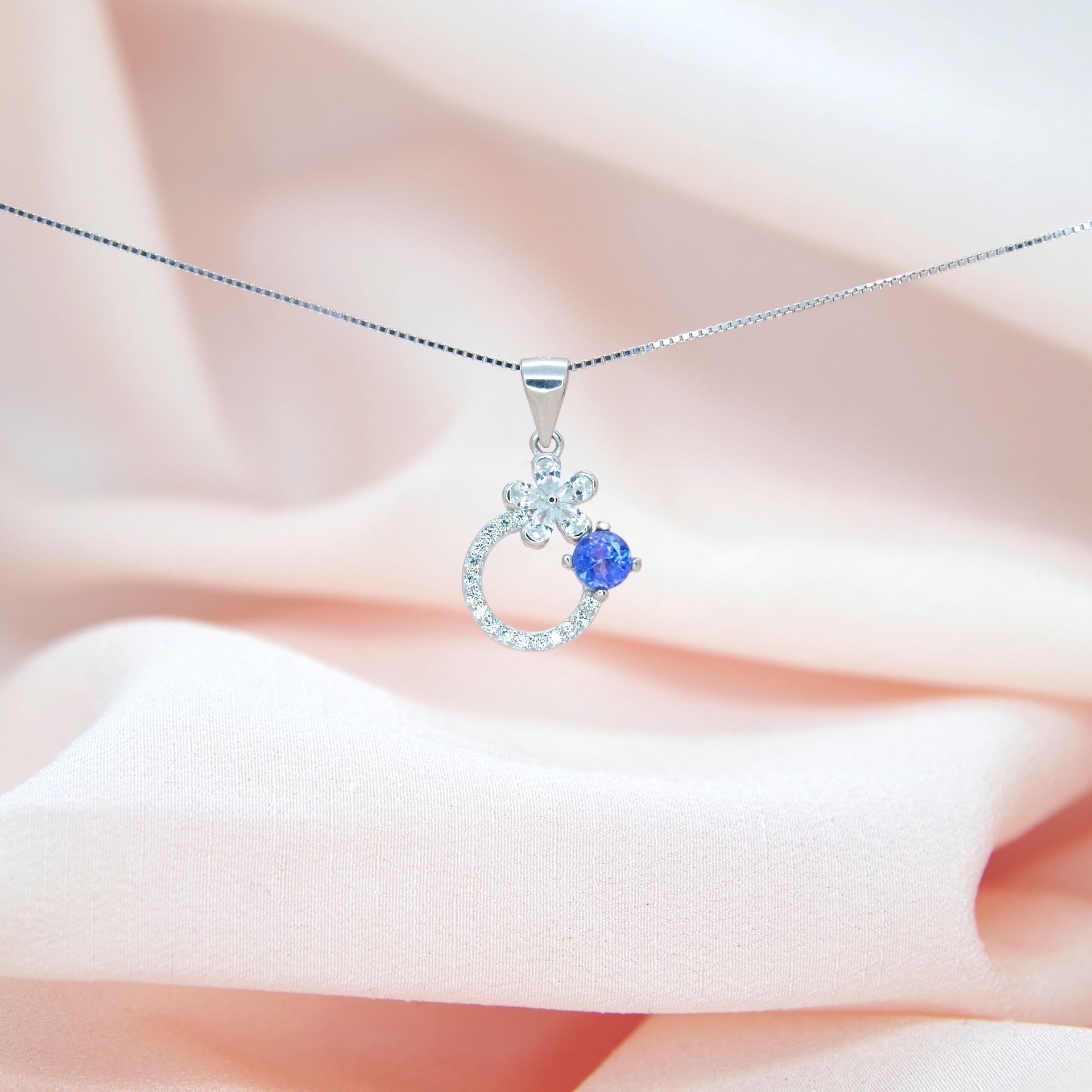 Jemný stříbrný přívěsek s pravým tanzanitem a zirkony.
