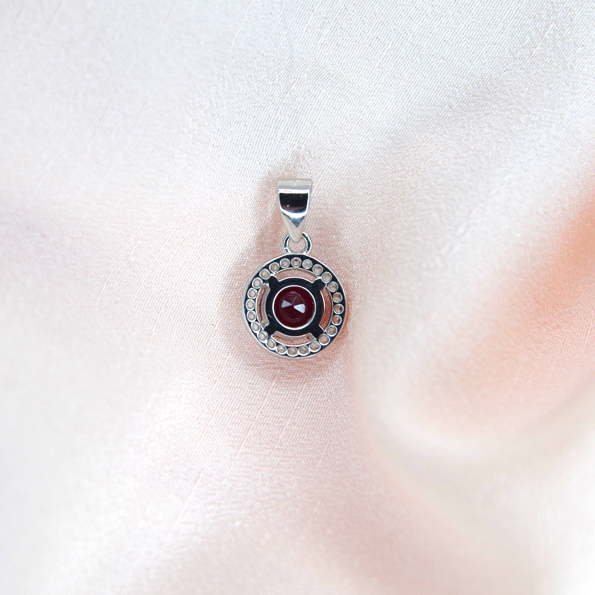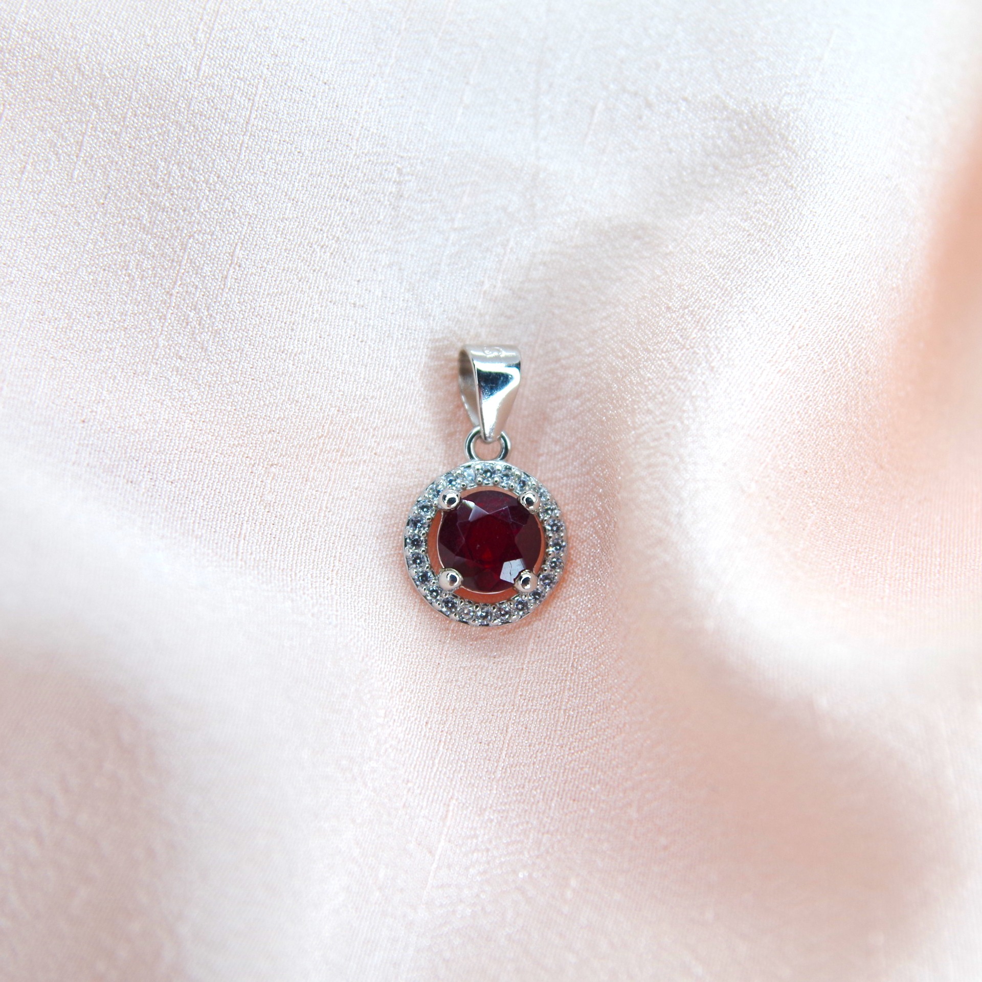 Krásný stříbrný přívěsek s pravým rubínem a zirkony. Pozlacený 14k bílým zlatem.
