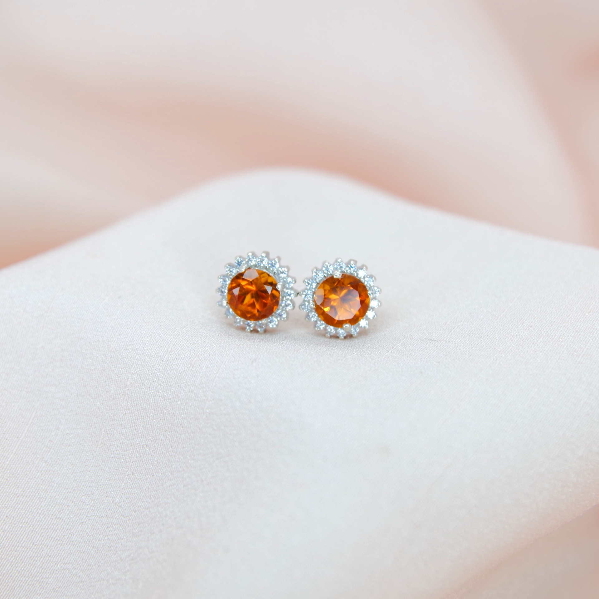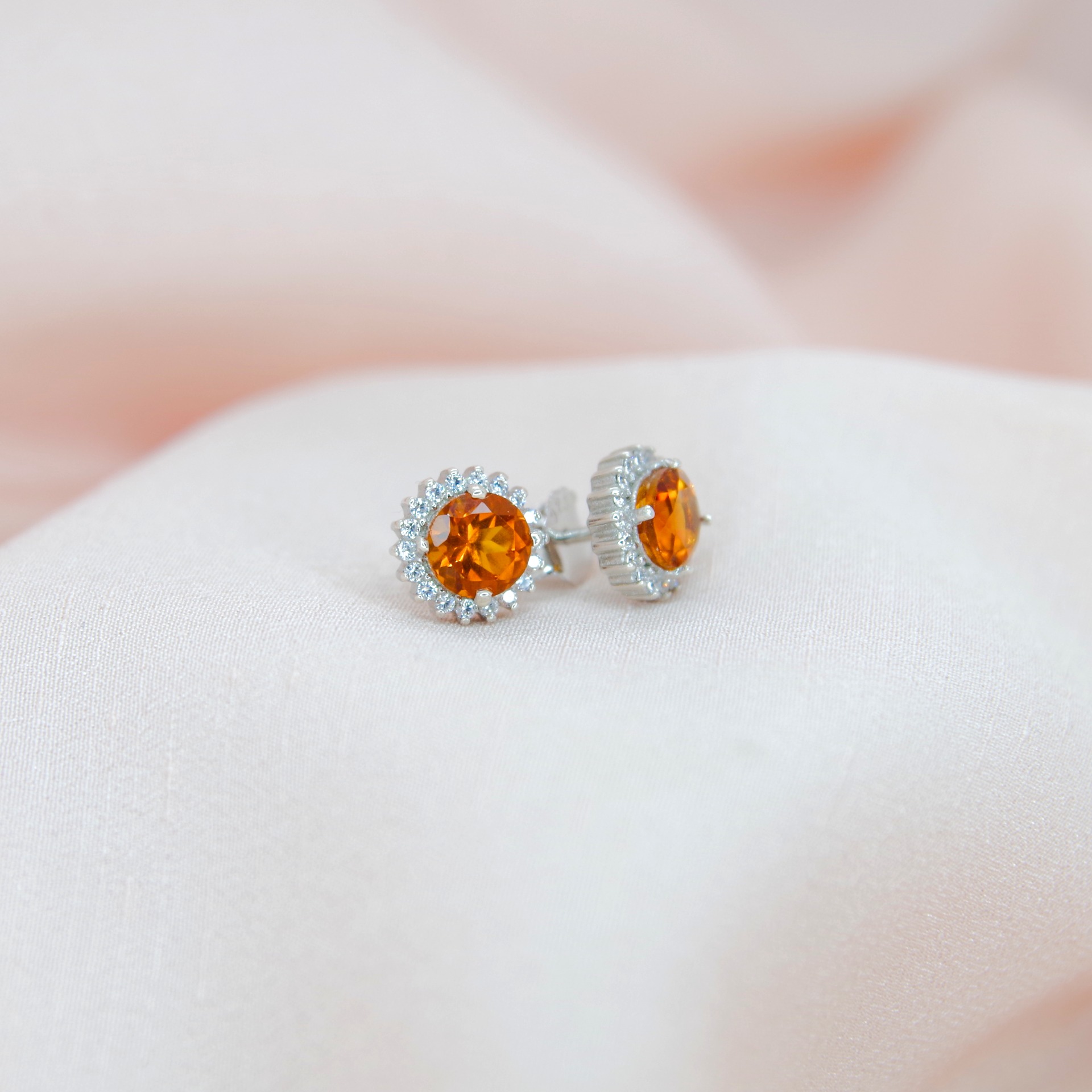 Krásné stříbrné náušnice s přírodními citríny a zirkony, pozlacené 14k bílým zlatem.