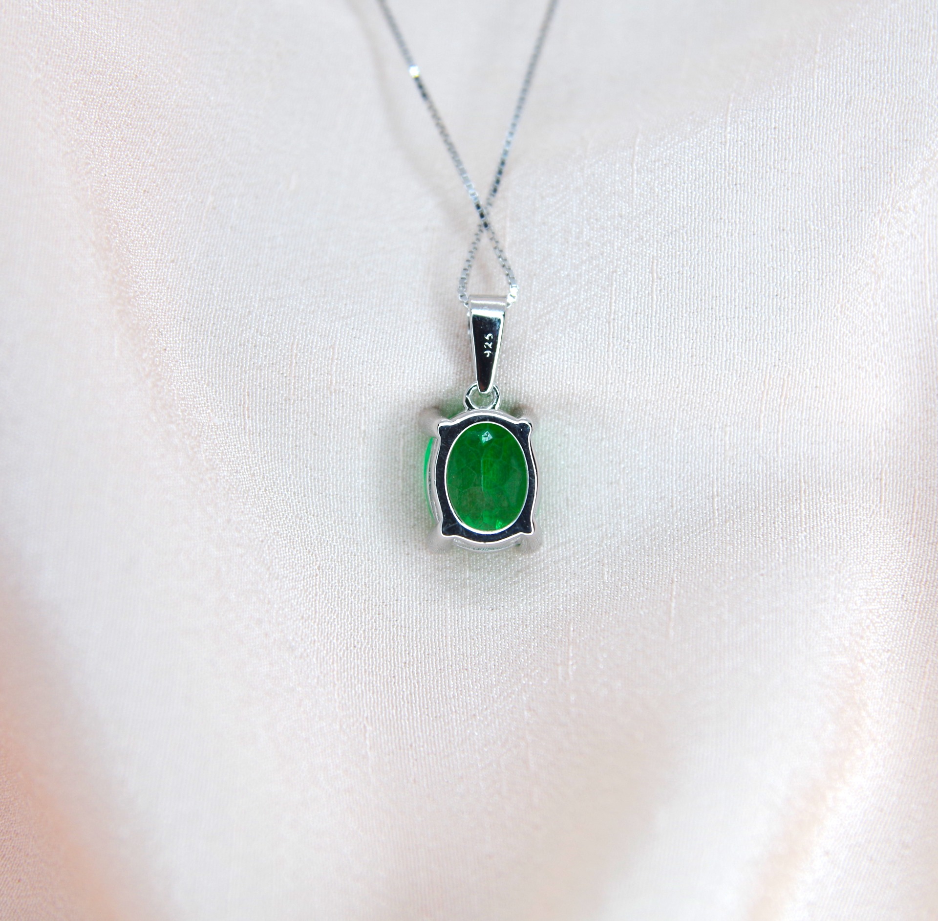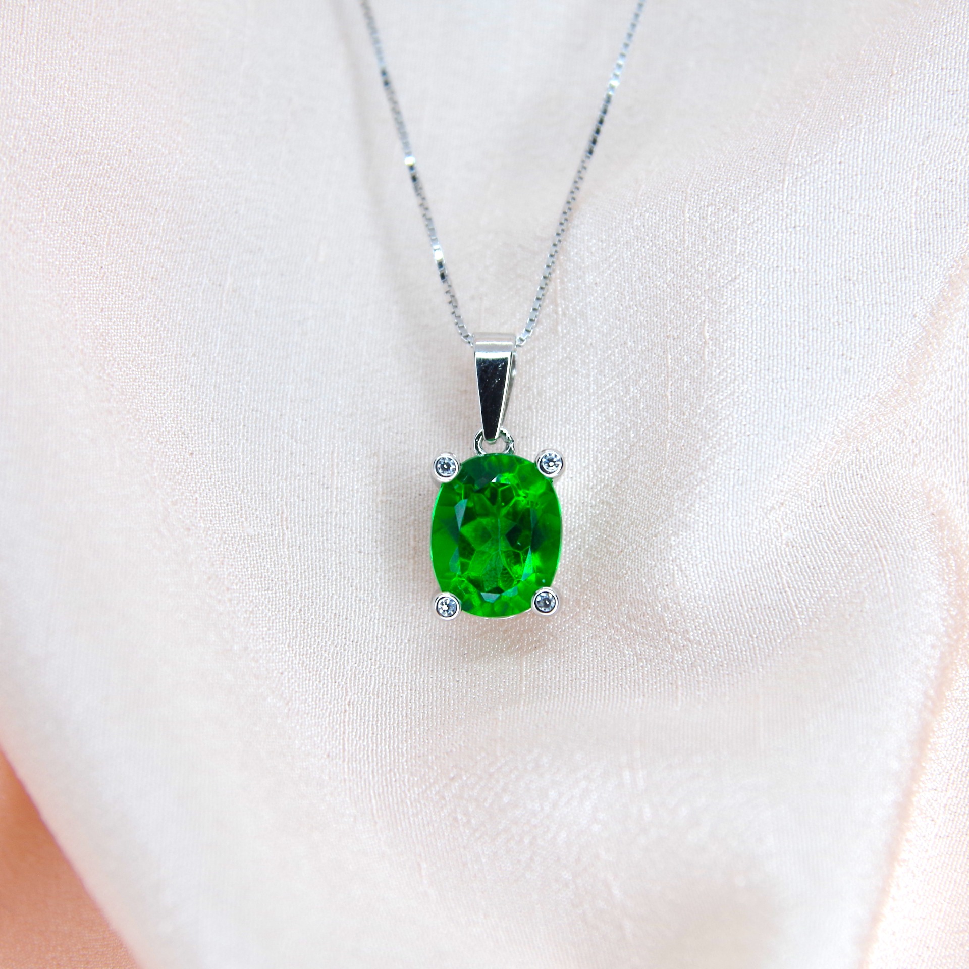 Elegantní stříbrný přívěsek s přírodním zeleným topazem a zirkony. Pozlacený 14k bílým zlatem.