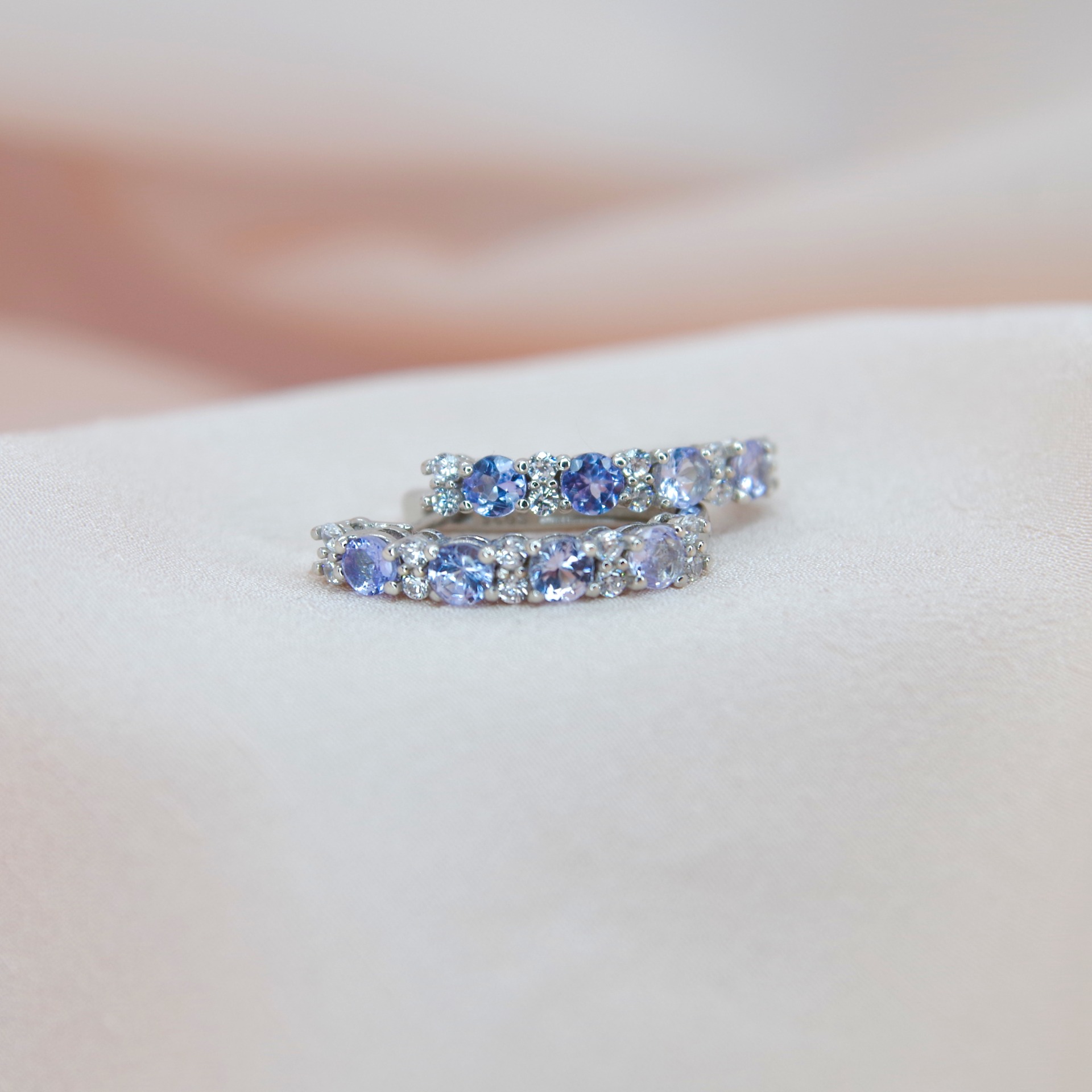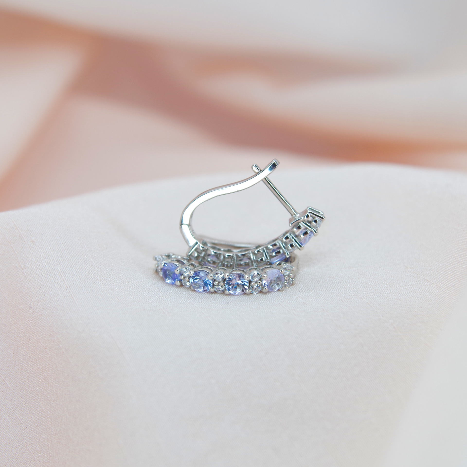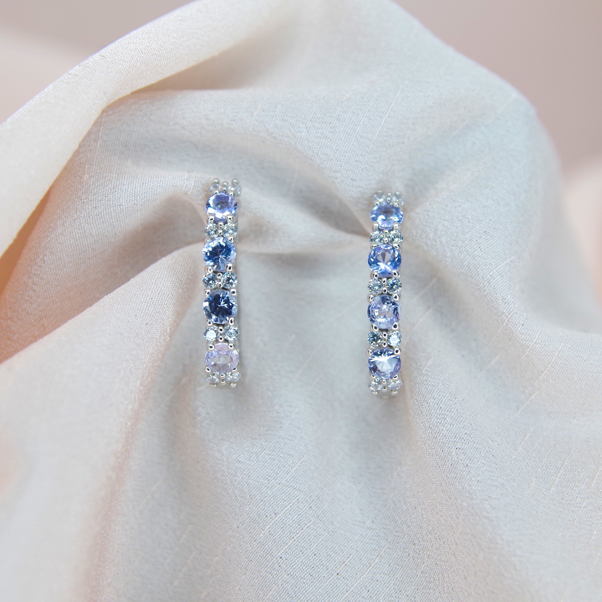 Elegantní stříbrné náušnice s přírodními tanzanity, pozlacené 14k bílým zlatem