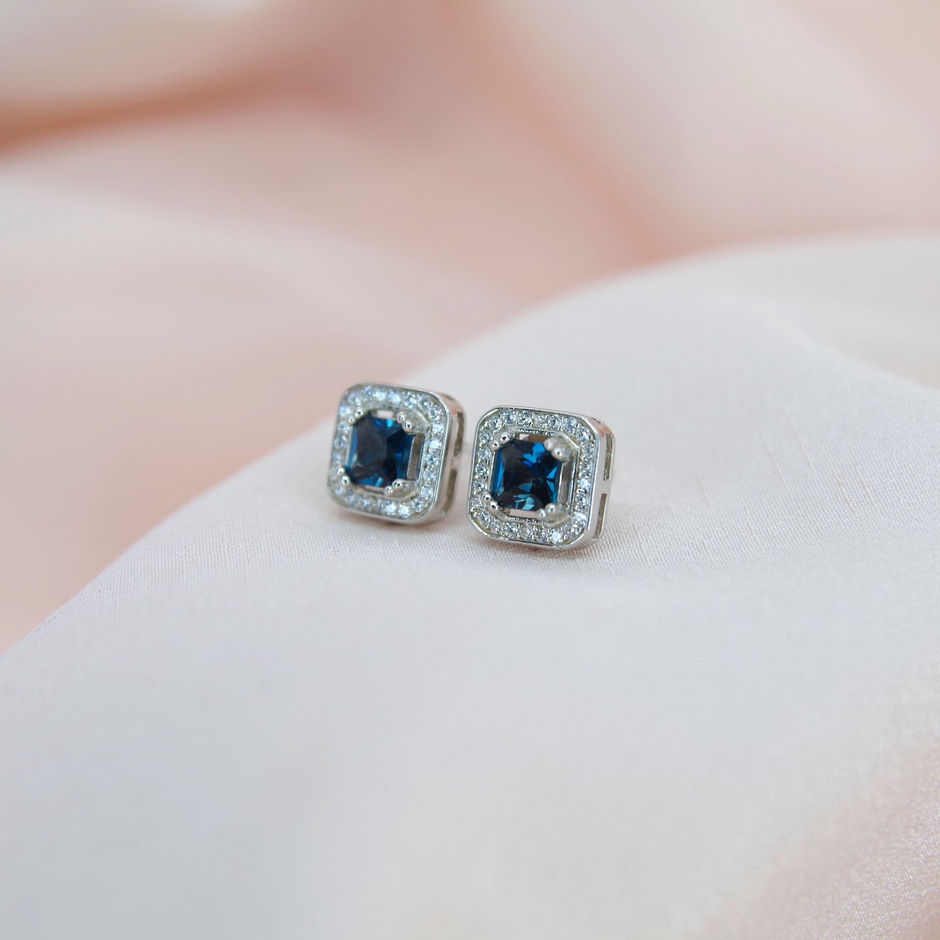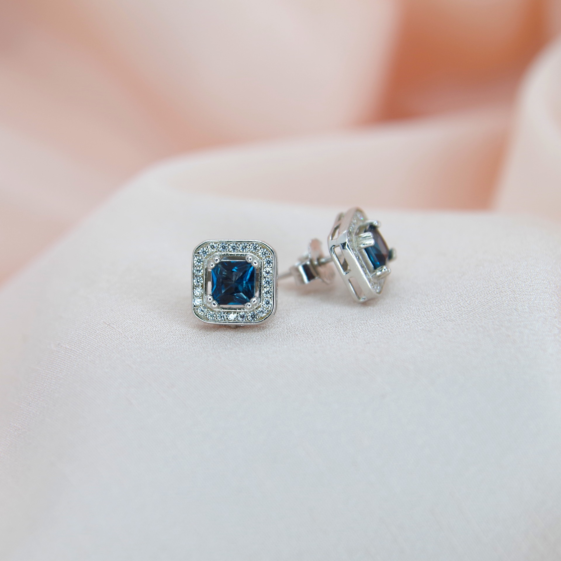 Krásné stříbrné náušnice s pravými topazy, pozlacené 14k bílým zlatem.