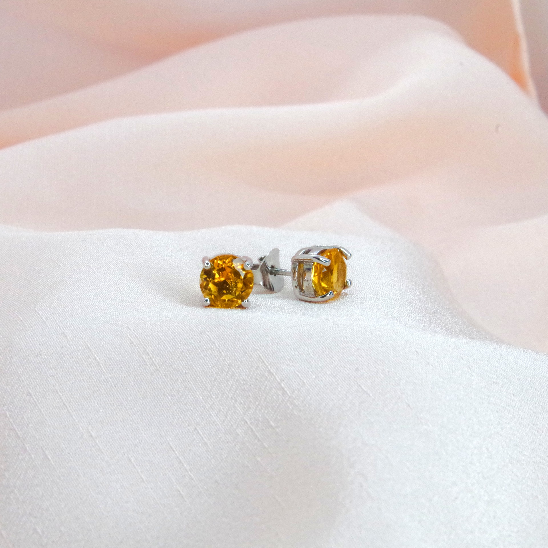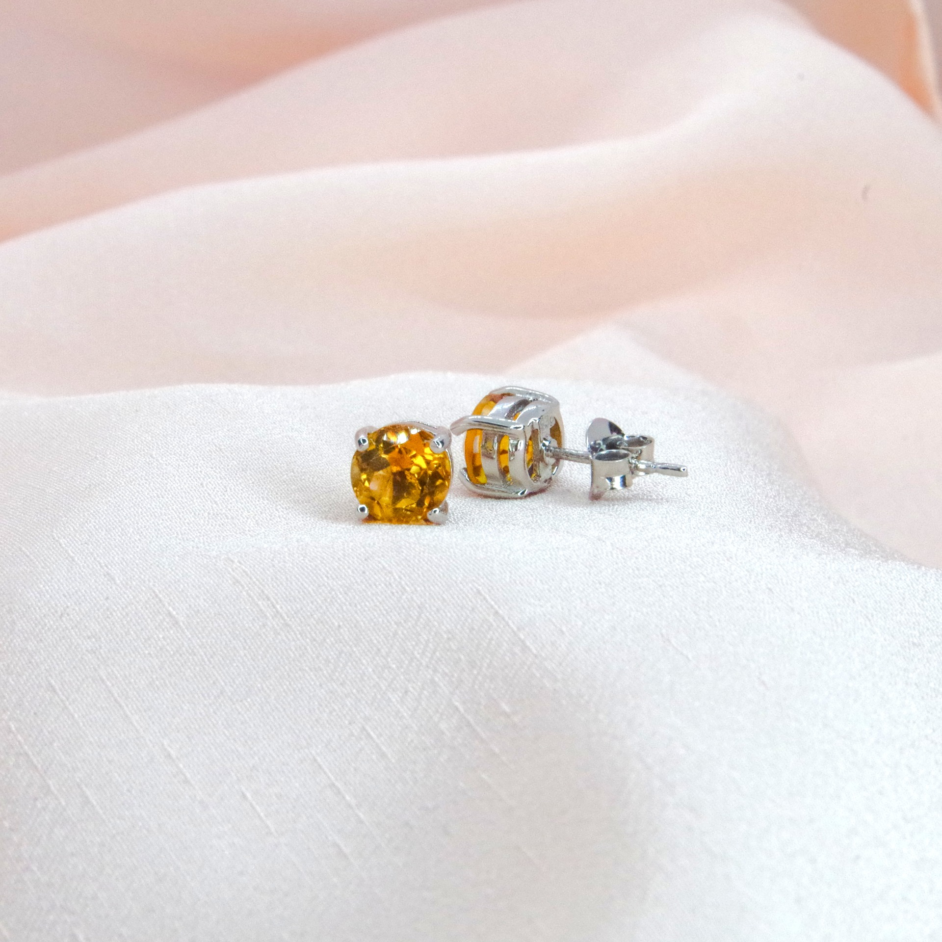 Krásné stříbrné náušnice s přírodními citríny, pozlacené 14k bílým zlatem.