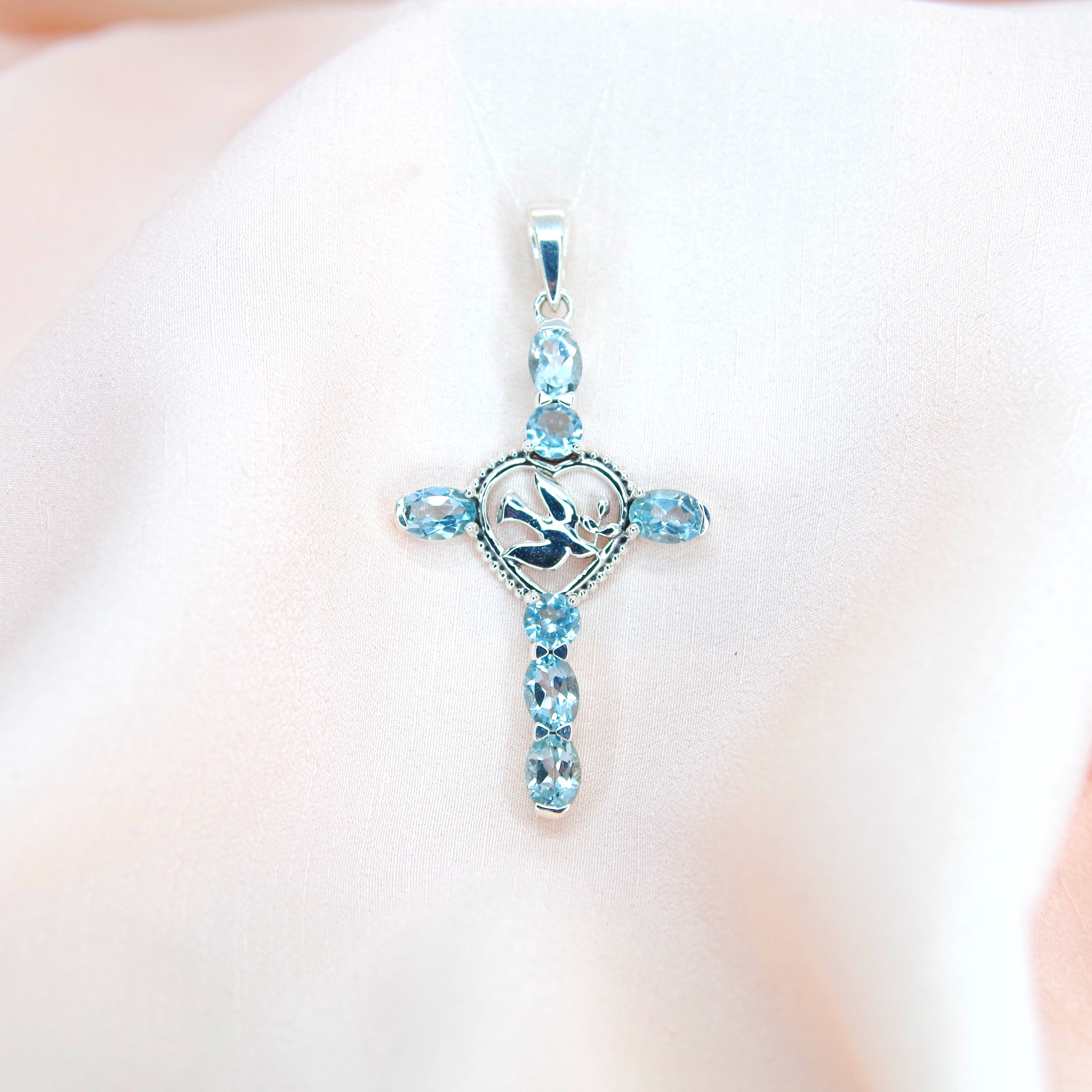 KRÁSNÝ KŘÍŽEK S PŘÍRODNÍM MODRÝM TOPAZEM